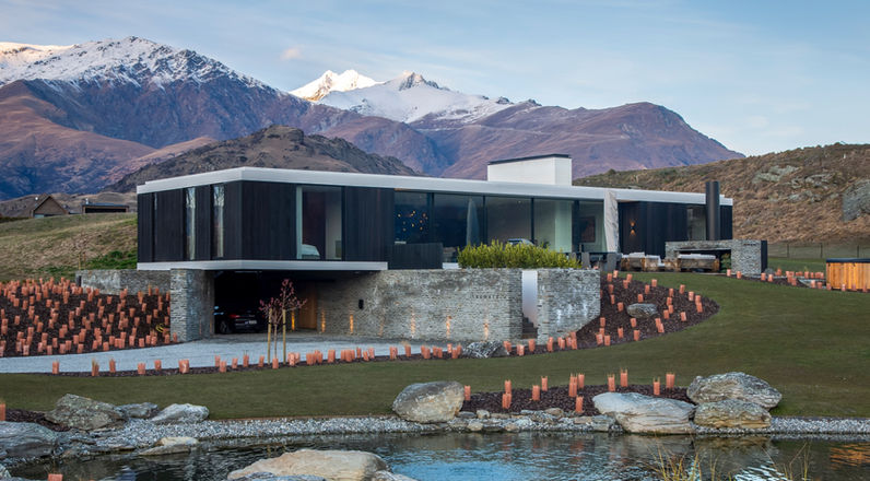 Taumata is a unique modernist home set into an undulating landscape on a secluded site enjoying uninterrupted views of the surrounding alpine landscape.
